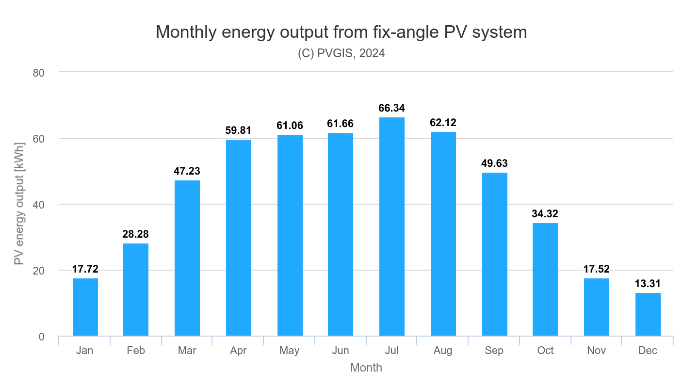 Pre výpočet výkonu systému a množstva vyrobenej energie sme použili nasledovnú aplikáciu: https://re.jrc.ec.europa.eu/pvg_tools/en/tools.html