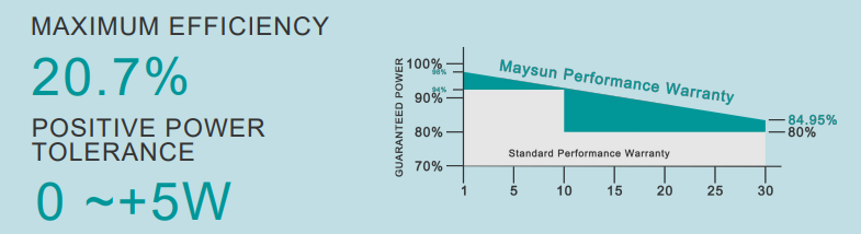 Jedinečný dizajn modulov umožňuje optimalizovanú výrobu energie aj v podmienkach tienenia. Taktiež sa môže pýšiť vysokou spoľahlivosťou a odolnosťou voči rôznym nepriaznivým podmienkam, ako sú soľ, amoniak, piesok, oblasti s vysokou teplotou a vysokou vlhkosťou.